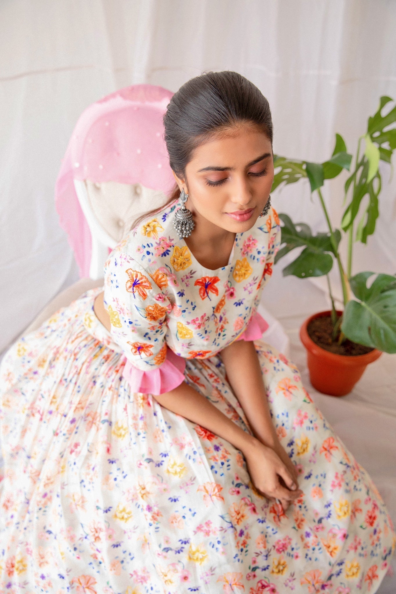 White Floral Lehenga